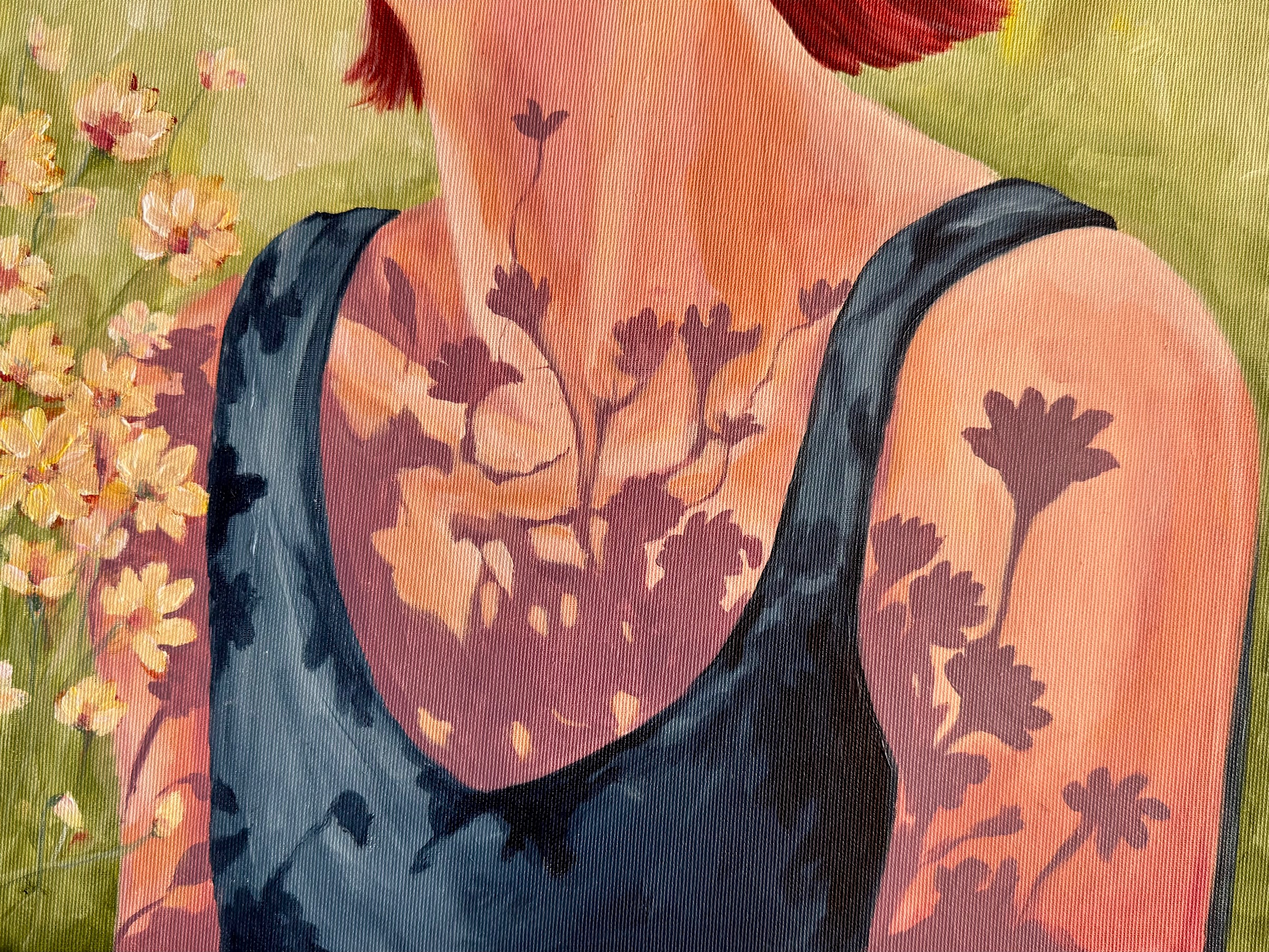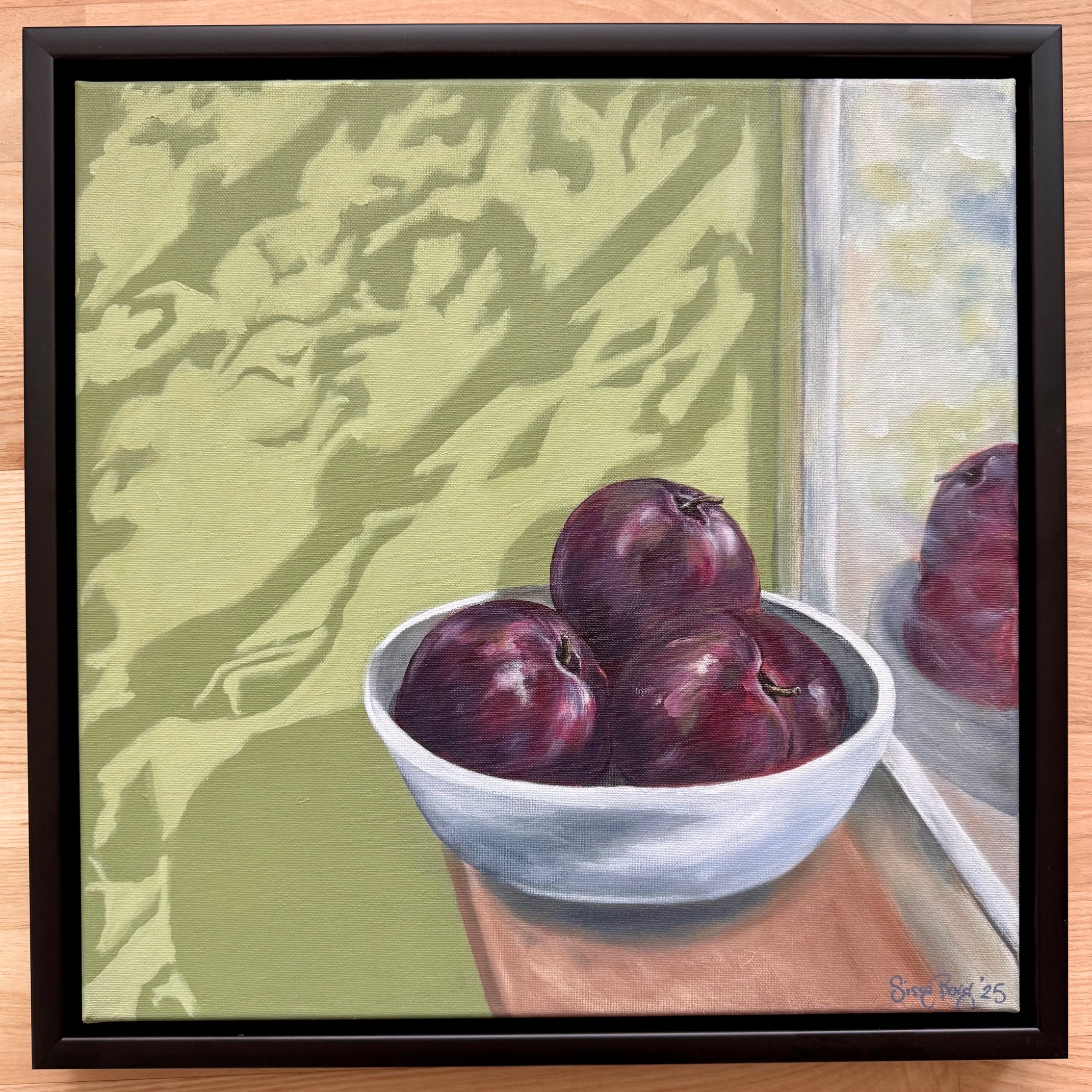 Akryl og soft pastel på lærred, 40 x 60 cm, i sort træramme.